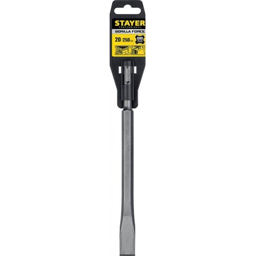 Зубило плоское 20 х 250 мм, SDS-Plus, STAYER29352-20-250_z02, предназначено для работ по бетону, кирпичной кладке, реконструкции стыков, оголения арматуры и т.д. Используется с перфораторами SDS-plus. Особенности изделия: индукционная трехступенчатая закалка, высокопрочная легированная сталь. Обладает высокой стойкостью к ударам и динамическим нагрузкам.