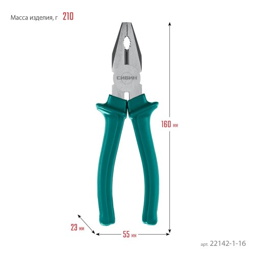 Плоскогубцы СИБИН 22142-1-16, предназначены для выполнения слесарных, монтажных и ремонтных работ, широко используются в промышленности, транспорте, автосервисах и в личных гаражах и мастерских для захвата и удерживания мелких предметов, перекусывания проволоки. Изготовлены из высококачественной кованой стали. Имеют маслобензостойкие рукоятки.
