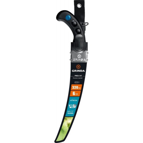 Садовая ножовка GRINDA 8-151853_z01 предназначена для пиления твердой сырой древесины. Изготовлена из высококачественной японской стали SK5. Закаленные зубья имеют разводку за счет конусности полотна в поперечном сечении, трехгранную заточку 3D и обратный наклон. Импульсная закалка каждого зуба в отдельности обеспечивает высокую твёрдость и механическую прочность зуба для длительного срока службы. Тефлоновое покрытие лезвия. Пластмассовые ножны имеют средства крепления на ремне и обеспечивают удобное и безопасное хранение пилы. Эргономичная рукоятка снижает утомляемость при выполнении садовых работ.