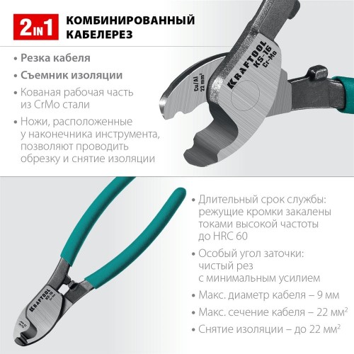 Профессиональный электромонтажный инструмент KRAFTOOL изготовлен из высококачественной стали и предназначен для перекусывания гибких проводников, изготовленных только из цветных металлов.