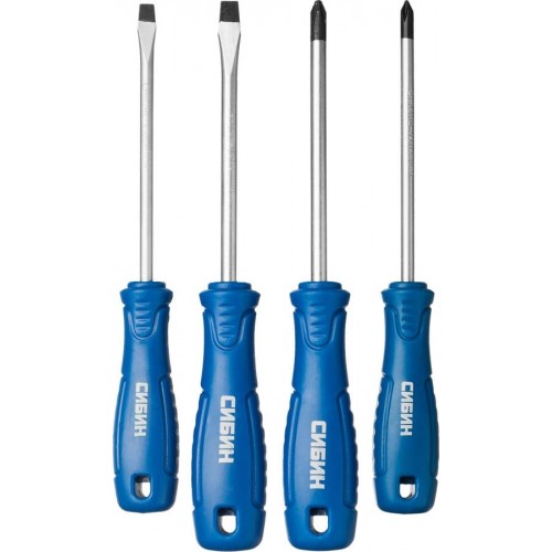 Набор отверток СИБИН 25084, предназначен для монтажа и демонтажа резьбовых соединений. Маслобензостойкая рукоятка эргономичной формы обеспечивает комфорт при проведении работ. Отвертки изготовлены из закаленной, качественной инструментальной стали.
