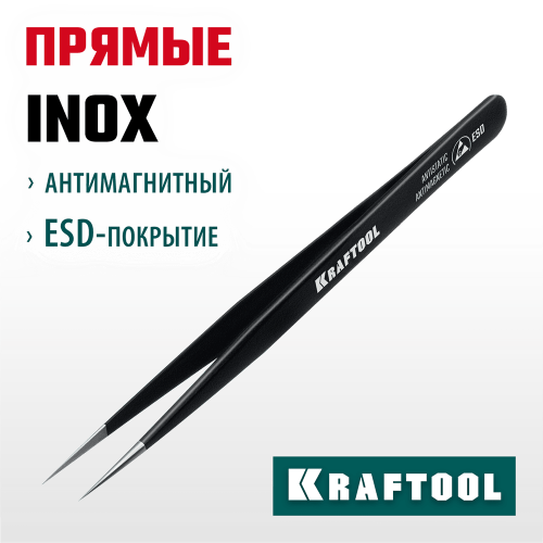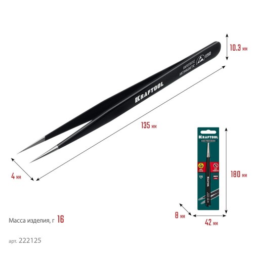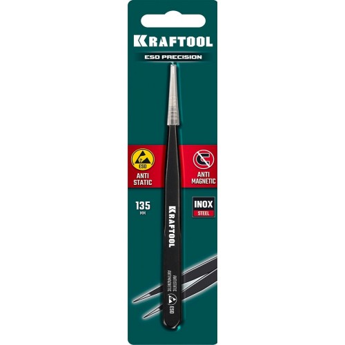 KRAFTOOL прямой 135 мм, Антистатический антимагнитный прецизионный пинцет (222125)