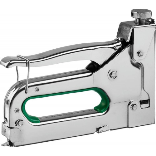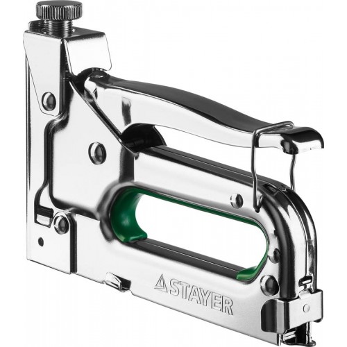 Степлер мебельный строительный STAYER 31508_z02, предназначен для работы при креплении различных материалов с помощью скоб. Предназначен для широкой скобы, кабельной скобы, а так же гвоздей и штифтов. Регулировка силы удара. Пружина и боек из закаленной инструментальной стали. Высокопрочный стальной корпус. Резиновая вставка снижает отдачу.