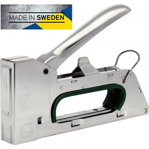 Степлер (скобозабиватель) RAPID 5000066, предназначен для для сложных профессиональных задач и точных работ. Превосходная производительность и длительный срок службы подразумевают, что R14E легко справится с частым использованием. Эта модель идеально подходит для пользователей с маленькими руками и может применяться для различных задач, включая фиксацию тонких материалов, таких как теплоизоляция, влагостойкие покрытия, оберточная пленка, брезент, картон и другие материалы, требующие надежного закрепления. Цельнометаллический корпус. Эргономичная рукоятка с замком для удобного хранения.