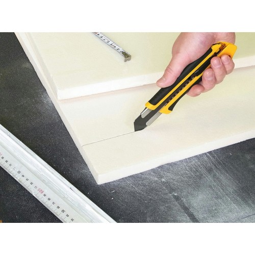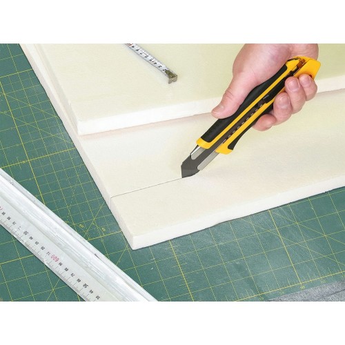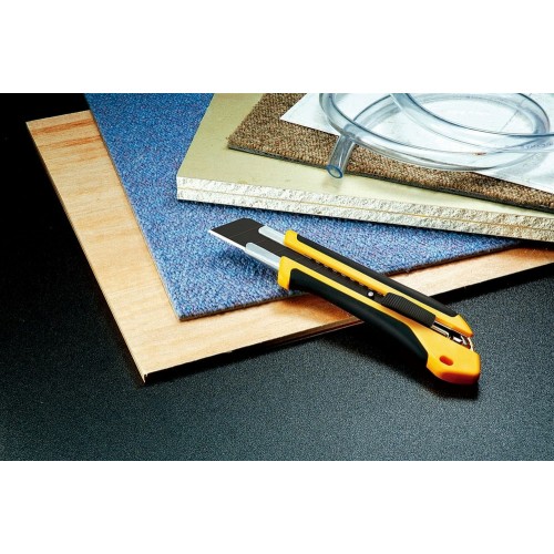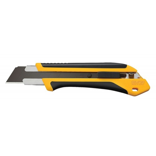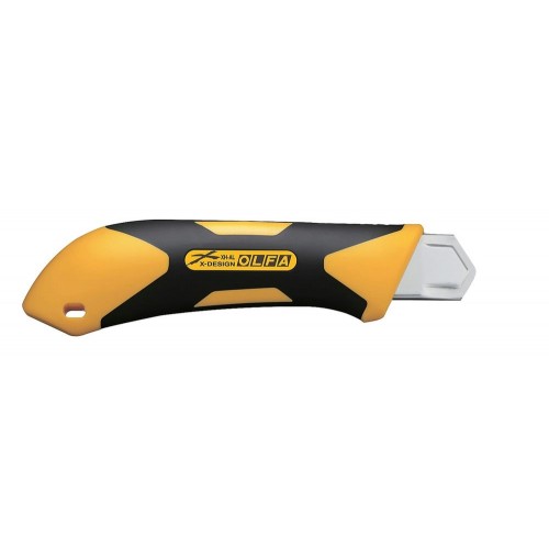 В серию OLFA X-design ComfortGrip был добавлен сверхпрочный нож XH-AL с системой фиксации лезвия Auto-Lock. Корпус инструмента изготовлен из армированного фибергласса, что делает его легким, но очень прочным. Увеличенная рукоятка позволяет резать даже твердые материалы, а противоскользящие резиновые накладки по периметру обеспечивают максимальный контроль над резом.Предварительно оснащен 25-миллиметровым черным лезвием HBB, которое на 25% острее обычных лезвий OLFA, а также толще и прочнее, чем у стандартных ножей. Канал для лезвия выполнен из нержавеющей стали, что обеспечивает оптимальную режущую способность.