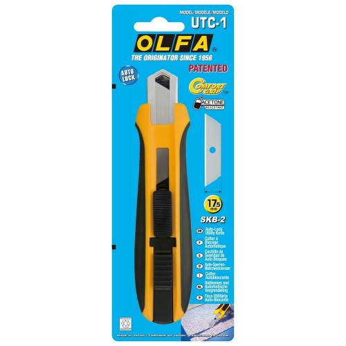 Универсальный нож OLFA UTC-1 идеально подходит для любых работ. Удобен в использовании и очень точен за счет усиленной фиберглассом рукоятки с резиновыми вставками по периметру. Выдвижной нож имеет пять положений лезвия для быстрой регулировки длины. Фиксатор с автоматической блокировкой надежно удерживает лезвие во время резки. Очистка выполняется легко благодаря стойкому к ацетону корпусу.Поставляется с эксклюзивным трапециевидным лезвием OLFA SKB из углеродистой стали.