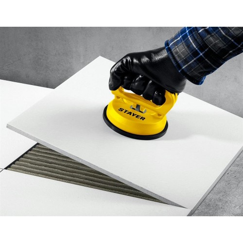 Стеклодомкрат STAYER 33718-1, предназначен для переноски стеклянных плит или панелей. Противоскользящее резиновое покрытие обеспечит идеальное прилипание к чистым, не пористым и ровным поверхностям, а эргономичная ручка обеспечит комфортные условия работы.