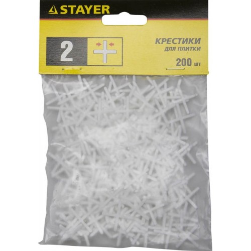 Крестики для кафельной плитки STAYER 3380-2, предназначены для установки по углам кафельной плитки для получения ровных швов и рядов. Одним из важных инструментов при укладки плитки являются крестики, т.к. при размещении на углах плитки вы получаете возможность класть плитку ровно и с одинаковым расстоянием между плитками.