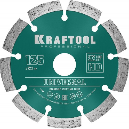 KRAFTOOL Ø 125Х22.2 мм, алмазный, сегментный, по железобетону, высокопрочному бетону диск отрезной UNIVERSAL 36680-125