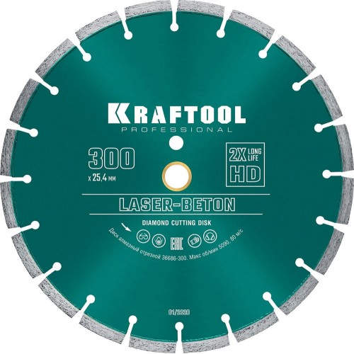 KRAFTOOL Ø 300Х25.4 мм, алмазный, сегментный, по бетону и камню, диск отрезной LASER-BETON 36686-300