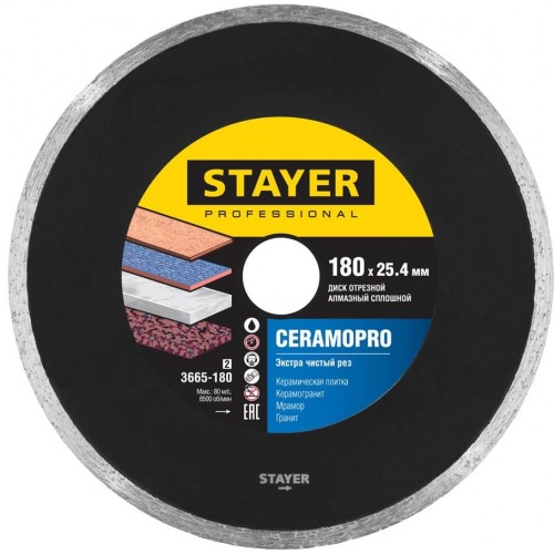 STAYER Ø 180Х25.4 мм, алмазный, cплошной, диск отрезной CERAMOPRO 3665-180_z02 Professional