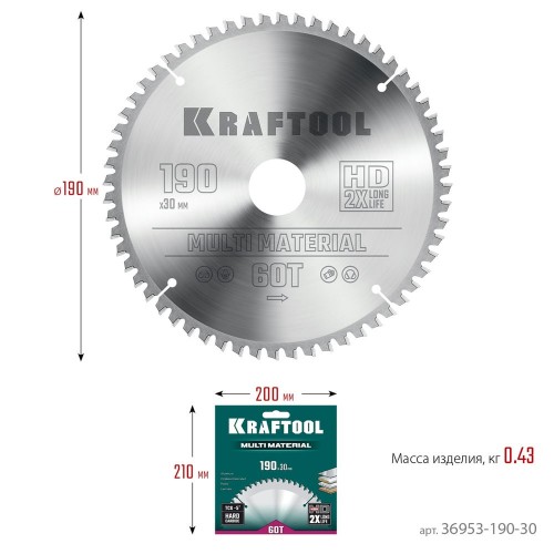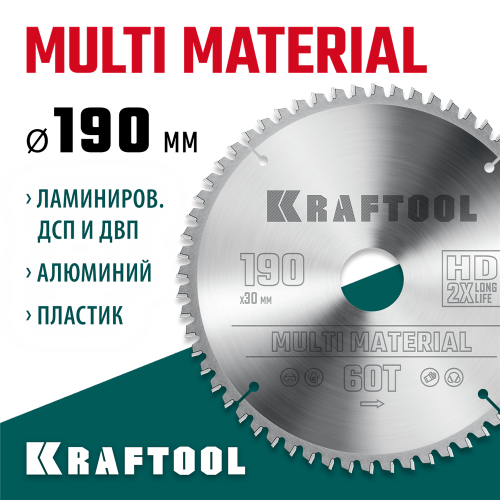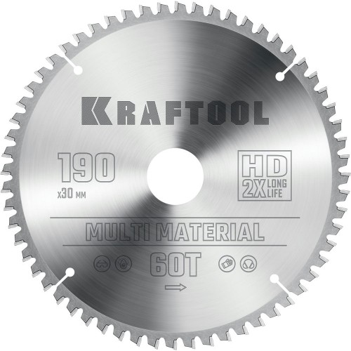 KRAFTOOL Multi Material 190х30мм 60Т, диск пильный по алюминию (36953-190-30)