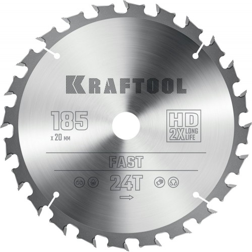 KRAFTOOL Fast 185 х 20 мм 24Т, диск пильный по дереву (36950-185-20)