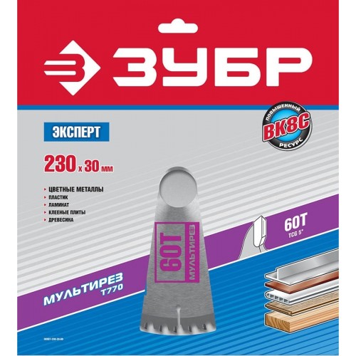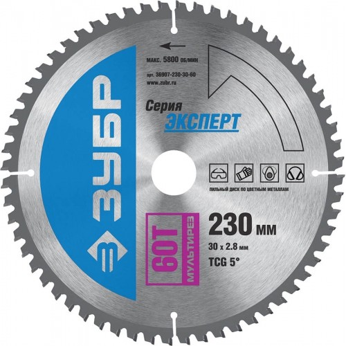 ЗУБР Ø 230 х Ø 30 мм, 60T, диск пильный по алюминию, ламинату 36907-230-30-60