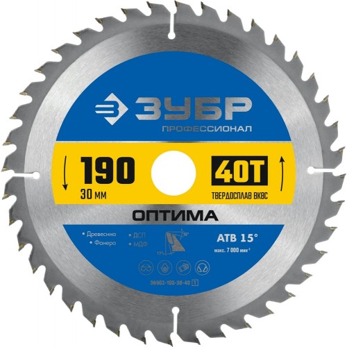 Диск пильный по дереву ЗУБР Оптима 36903-190-30-40_z01, предназначен для продольного, поперечного и углового распила древесины и древесных материалов на циркулярных, торцовочных и станковых пилах. Автоматизированная высококачественная пайка для надежного крепления зубьев. Закаленный корпус из высоколегированной стали препятствует возникновению биений при работе. Компьютерная балансировка диска для предотвращения биений при работе. Автоматическая трехсторонняя шлифовка зубьев для максимально точной геометрии режущих элементов и чистого реза. Компенсационные прорези исключают внутреннее напряжение и деформацию диска, возникающую при его перегреве во время эксплуатации.