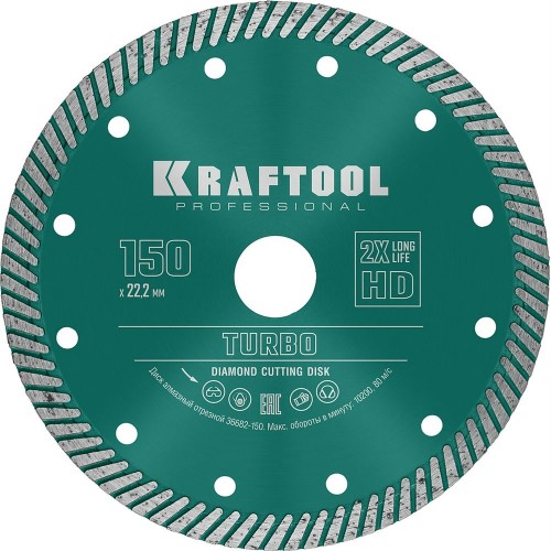 KRAFTOOL Ø 150Х22.2 мм, алмазный, сегментный, по армированному бетону, кирпичу диск отрезной TURBO 36682-150
