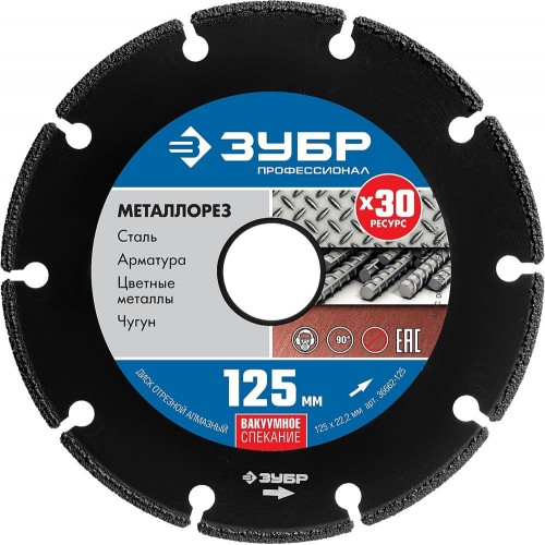 ЗУБР Ø 125Х22.2 мм, алмазный, сегментный, по металлу диск отрезной МЕТАЛЛОРЕЗ 36662-125 Профессионал