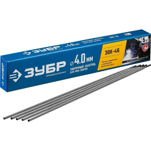 ЗУБР Ø 4.0 мм, 5 кг, для ММА сварки, с рутиловым покрытием, электрод сварочный ОК46 40035-4.0 Профессионал