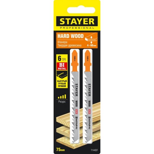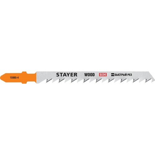 STAYER по твердому дереву, фанере, EU-хвостовик, шаг 4 мм, 75 мм, 2 шт., полотна для эл/лобзика Bi-Metal 15985-4_z02 Professional