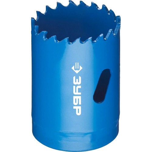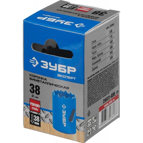 Буровая коронка биметаллическая ЗУБР 29531-038_z01, применяется при сверлении металла, дерева, ДСП, гипсокартона и твёрдых пластмасс. Универсальные биметаллические кольцевые пилы ЗУБР имеют разведённые закалённые зубья повышенной твёрдости с прогрессивным расположением. Благодаря чему гарантируется аккуратное чистовое сверление без трещин и сколов. Компенсационные прорези в корпусе обеспечивают снижение шума при работе, а также предотвращают деформацию пилы вследствие перегрева изделия.