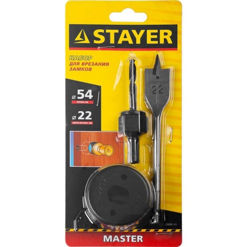 Инструмент STAYER это качество и надежность, проверенные временем! Набор применяется для врезания замков в дверях из древесного массива и клееных материалов любой плотности.