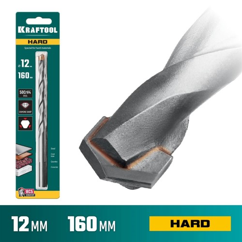 Сверло специальное по твёрдым материалам KRAFTOOL 29177-160-12, применяется для работ по бетону, граниту и особо прочным материалам. Сверхпрочная твердосплавная пластина. Трехгранный хвостовик для надежной фиксации в патроне. Корпус сверла из высоколегированной стали.