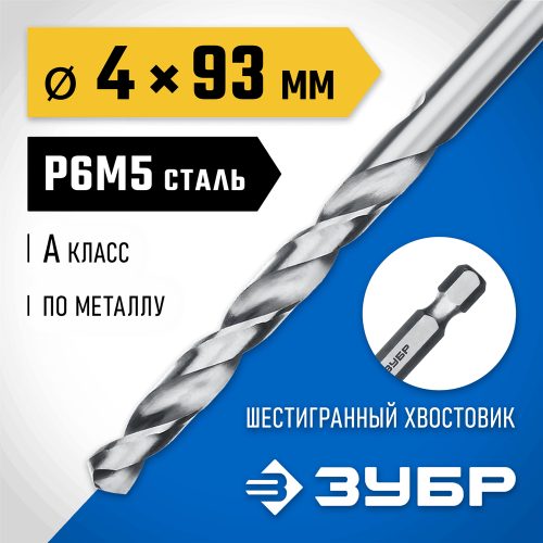 Сверло ЗУБР 29623-4, предназначено для обработки легированных и углеродистых сталей с пределом прочности до 900Н/мм², цветных металлов, серого чугуна и пластмассы. Качественное и точное сверло с большим ресурсом. Изготовлено из стали Р6М5 и имеет высокою теплостойкость и продолжительный срок службы. Сверло изготовлено методом шлифования профиля и соответствует классу точности "А". Шестигранный хвостовик с проточкой исключает возможность проворачивание сверла в патроне и облегчает замену инструмента. Крестообразная подточка позволяет начать сверлить без предварительного кернения. Угол заточки при вершине равный 135° повышает производительность работ.