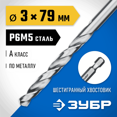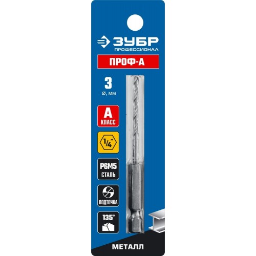 Сверло ЗУБР 29623-3, предназначено для обработки легированных и углеродистых сталей с пределом прочности до 900Н/мм², цветных металлов, серого чугуна и пластмассы. Качественное и точное сверло с большим ресурсом. Изготовлено из стали Р6М5 и имеет высокою теплостойкость и продолжительный срок службы. Сверло изготовлено методом шлифования профиля и соответствует классу точности "А1". Шестигранный хвостовик с проточкой исключает возможность проворачивание сверла в патроне и облегчает замену инструмента. Крестообразная подточка позволяет начать сверлить без предварительного кернения. Угол заточки при вершине равный 135° повышает производительность работ.