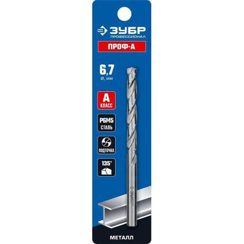Сверло ЗУБР 29625-6.7, предназначено для обработки легированных и углеродистых сталей с пределом прочности до 900 Н/мм², цветных металлов, серого чугуна и пластмассы. Качественное и точное сверло с большим ресурсом. Сверло изготовлено методом шлифования профиля по ГОСТ 10902-77 и соответствует классу точности сверления "А1". Крестообразная подточка позволяет начать сверлить без предварительного кернения. Угол заточки при вершине равный 135° повышает производительность работ.