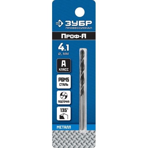 Сверло ЗУБР 29621-4.1, предназначено для обработки легированных и углеродистых сталей с пределом прочности до 900 Н/мм², цветных металлов, серого чугуна и пластмассы. Качественное сверло с высоким ресурсом. Изготовлено методом винтового проката по ГОСТ 10902-77 и соответствует классу точности "В". Угол заточки 118 градусов позволяет обрабатывать легированные и углеродистые стали.