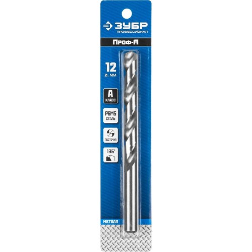 Сверло ЗУБР 29625-12, предназначено для обработки легированных и углеродистых сталей с пределом прочности до 900 Н/мм², цветных металлов, серого чугуна и пластмассы. Качественное и точное сверло с большим ресурсом. Сверло изготовлено методом шлифования профиля по ГОСТ 10902-77 и соответствует классу точности сверления "А1". Крестообразная подточка позволяет начать сверлить без предварительного кернения. Угол заточки при вершине равный 135° повышает производительность работ.
