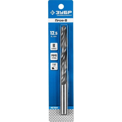 Сверло ЗУБР 29621-12.5, предназначено для обработки легированных и углеродистых сталей с пределом прочности до 900 Н/мм², цветных металлов, серого чугуна и пластмассы. Качественное сверло с высоким ресурсом. Изготовлено методом винтового проката по ГОСТ 10902-77 и соответствует классу точности "В". Угол заточки 118 градусов позволяет обрабатывать легированные и углеродистые стали.