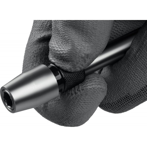 - Шестигранный хвостовик с проточкой обеспечивает быструю фиксацию удлинителя в патроне.