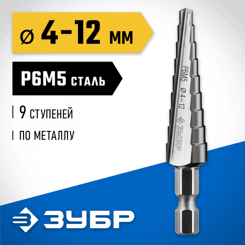 Сверло Зубр 29670-4-12-9_z01, предназначено для сверления металлических конструкций и заготовок, листовых материалов, цветных металлов, пластика. Рекомендованы для использования для сверления листового металла толщиной до 4мм, цветных металлов, пластмасс и других материалов. Крестообразная подточка позволяет начать сверление без предварительных работ. Угол заточки при вершине равный 135° для ускорения процесса сверления. Сверло изготовлено методом вышлифовки и соответствует классу точности "А1" .