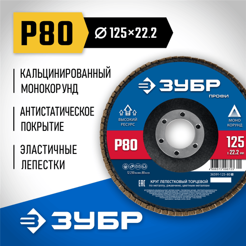 ЗУБР 125 х 22.2 мм, P80, КЛТ, Круг лепестковый торцевой (36591-125-80_z01)