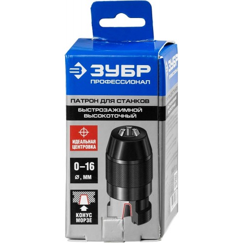 Патрон ЗУБР 29086-16_z01, применяется для зажима сверл, метчиков, концевых фрез и другого инструмента с цилиндрическим, трёх- и шестигранным хвостовиком во всех типах сверлильных станков с посадкой на конус Морзе. Возможность сверления отверстий повышенной точности. Самозатягивающийся механизм. Отсутствие необходимости использовать затяжной ключ. Долговечная ударопрочная конструкция.