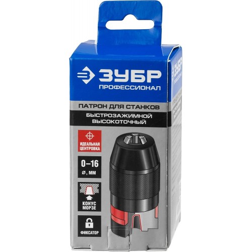 Патрон ЗУБР 29088-16_z01, применяется для зажима сверл, метчиков, концевых фрез и другого инструмента с цилиндрическим, трёх- и шестигранным хвостовиком во всех типах сверлильных станков с посадкой на конус Морзе. Возможность сверления отверстий повышенной точности. Самозатягивающийся механизм. Отсутствие необходимости использовать затяжной ключ. Дополнительный фиксатор зажима с храповым механизмом. Долговечная ударопрочная конструкция.