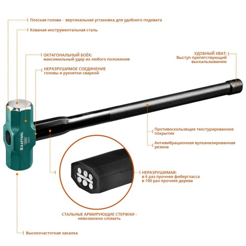 Кувалда KRAFTOOL 2009-5, предназначена для слесарно-монтажных работ. Рукоятка армирована стальными стержнями. Кованая инструментальная сталь. Закалено токами высокой частоты.