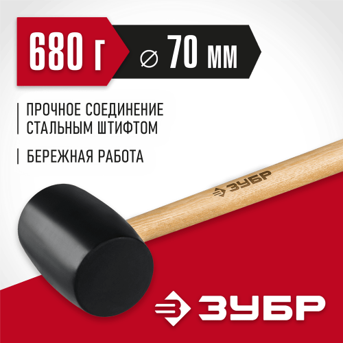 ЗУБР 680 г, чёрная резиновая киянка с деревянной рукояткой 2050-75_z02 Мастер