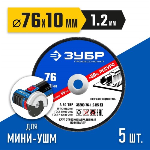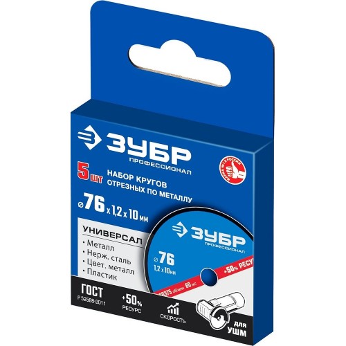 Набор кругов отрезных по металлу ЗУБР 36200-76-1.2-H5, применяется на мини УШМ для резки листового или цветного металла, нержавеющей стали и пластика. Круги изготовлены на современном высокотехнологичном оборудовании по оригинальной технологии. Оснащены усиленной стекловолоконной сеткой для обеспечения повышенной безопасности при работе. Отсутствие рывков и подклинивания. Идеальный рез тонколистового металла. Удобство реза в труднодоступных местах. Гарантия безопасности применения. Круги по металлу применяются на мини УШМ ЗУБР