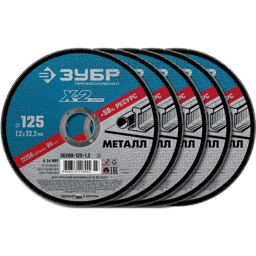 ЗУБР 5 шт., 125х1.2х22.23 мм, набор кругов отрезных абразивных по металлу для УШМ 36200-125-1.2-H5_z03 Профессионал