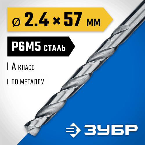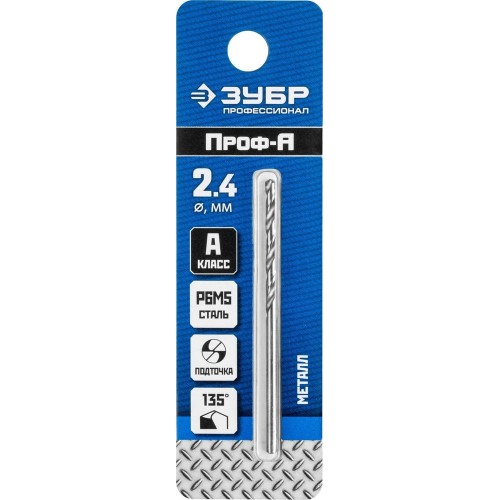 Сверло ЗУБР 29625-2.4, предназначено для обработки легированных и углеродистых сталей с пределом прочности до 900 Н/мм², цветных металлов, серого чугуна и пластмассы. Качественное и точное сверло с большим ресурсом. Сверло изготовлено методом шлифования профиля по ГОСТ 10902-77 и соответствует классу точности сверления "А1". Крестообразная подточка позволяет начать сверлить без предварительного кернения. Угол заточки при вершине равный 135° повышает производительность работ.