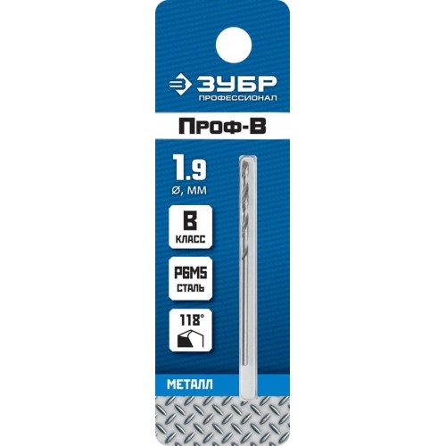 Сверло ЗУБР 29621-1.9, предназначено для обработки легированных и углеродистых сталей с пределом прочности до 900 Н/мм², цветных металлов, серого чугуна и пластмассы. Качественное сверло с высоким ресурсом. Изготовлено методом винтового проката по ГОСТ 10902-77 и соответствует классу точности "В". Угол заточки 118 градусов позволяет обрабатывать легированные и углеродистые стали.
