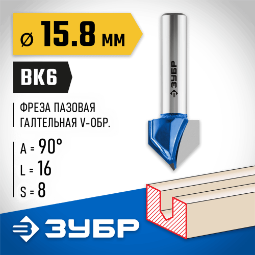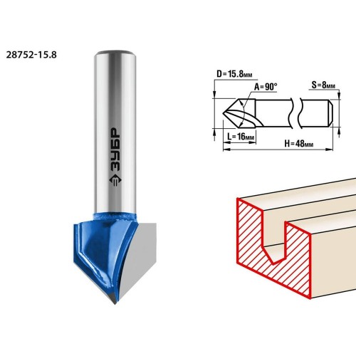 ЗУБР 15.8 x 16 мм, угол 90°, фреза пазовая галтельная V-образная 28752-15.8 Профессионал