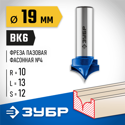 Фреза пазовая фасонная №4 ЗУБР 28743-19-13, предназначена для обработки торцев и кромок и сращивания деталей по торцу при работе с различными видами древесины. Высококачественный твердый сплав для повышенного ресурса и чистоты обработки. Заточка производится только на самых современных станках с ЧПУ.