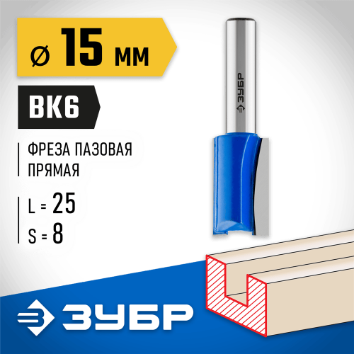 ЗУБР 15 x 25 мм, хвостовик 8 мм, фреза пазовая прямая 28753-15-25 Профессионал