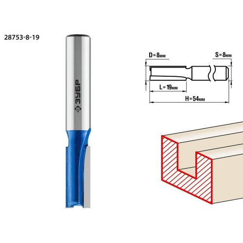 Фреза пазовая прямая ЗУБР 28753-8-19, предназначена для профилирования кромок, изготовления декоративных V-образных пазов и рисунков, фрезерования канавок при работе с различными видами древесины. Высококачественный твердый сплав для повышенного ресурса и чистоты обработки. Заточка производится только на самых современных станках с ЧПУ.