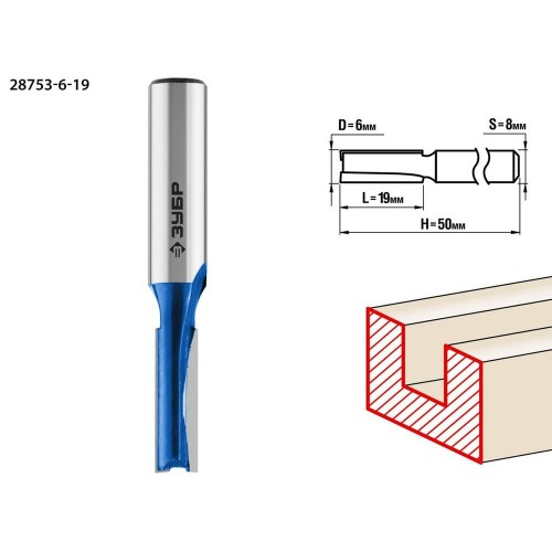 Фреза пазовая прямая ЗУБР 28753-6-19, предназначена для профилирования кромок, изготовления декоративных V-образных пазов и рисунков, фрезерования канавок при работе с различными видами древесины. Высококачественный твердый сплав для повышенного ресурса и чистоты обработки. Заточка производится только на самых современных станках с ЧПУ.