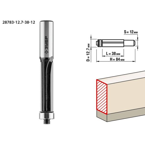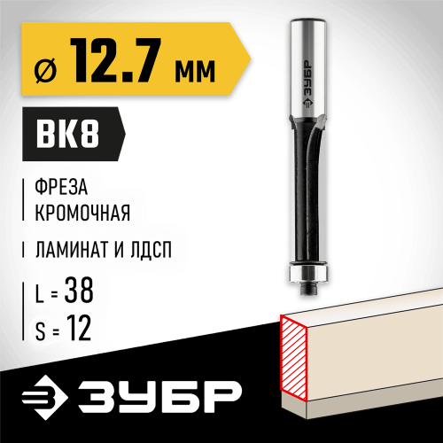Фреза кромочная прямая с нижним подшипником ЗУБР 28783-12.7-38-12, предназначена для получения прямого торца или кромки при обработке деталей и заготовок при работе с различными видами древесины. Улучшенный твердый сплав для повышенного ресурса. Три лезвия обеспечивают максимальную чистоту поверхности. Заточка производится только на самых современных станках с ЧПУ. Упорный подшипник позволяет обрабатывать криволинейные кромки без дополнительных приспособлений .