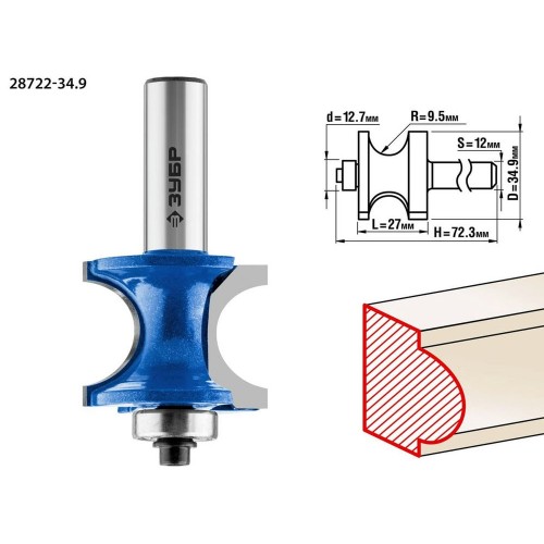 Фреза полустержневая с подшипником ЗУБР 28722-34.9, предназначена для обработки кромок, торцев, получения декоративного профиля при работе с различными видами древесины. Высококачественный твердый сплав для повышенного ресурса и чистоты обработки. Заточка производится только на самых современных станках с ЧПУ. Упорный подшипник позволяет обрабатывать криволинейные кромки без дополнительных приспособлений.